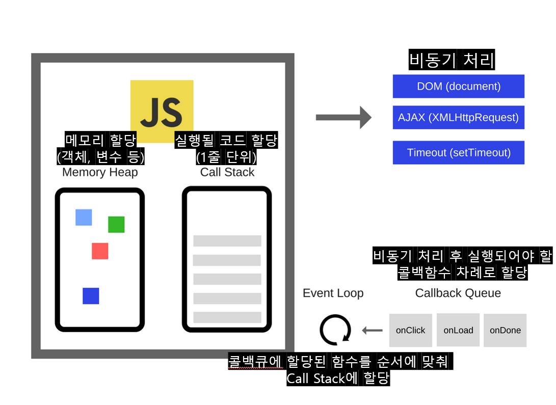 - 비동기 자바스크립트 코드를 Web APIs를 통해 작업